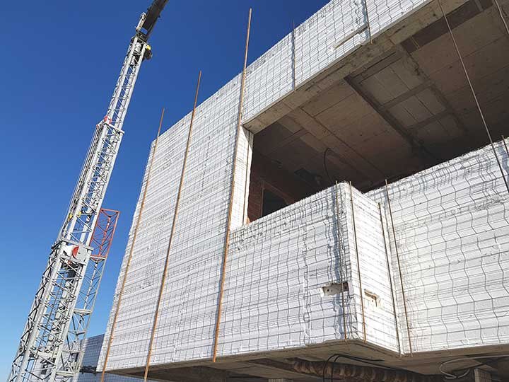 Insulation and cladding are installed in a single batch, reducing execution time and labor costs. The result is a lightweight reinforced concrete wall that allows anchoring all types of cladding systems without generating thermal bridges.